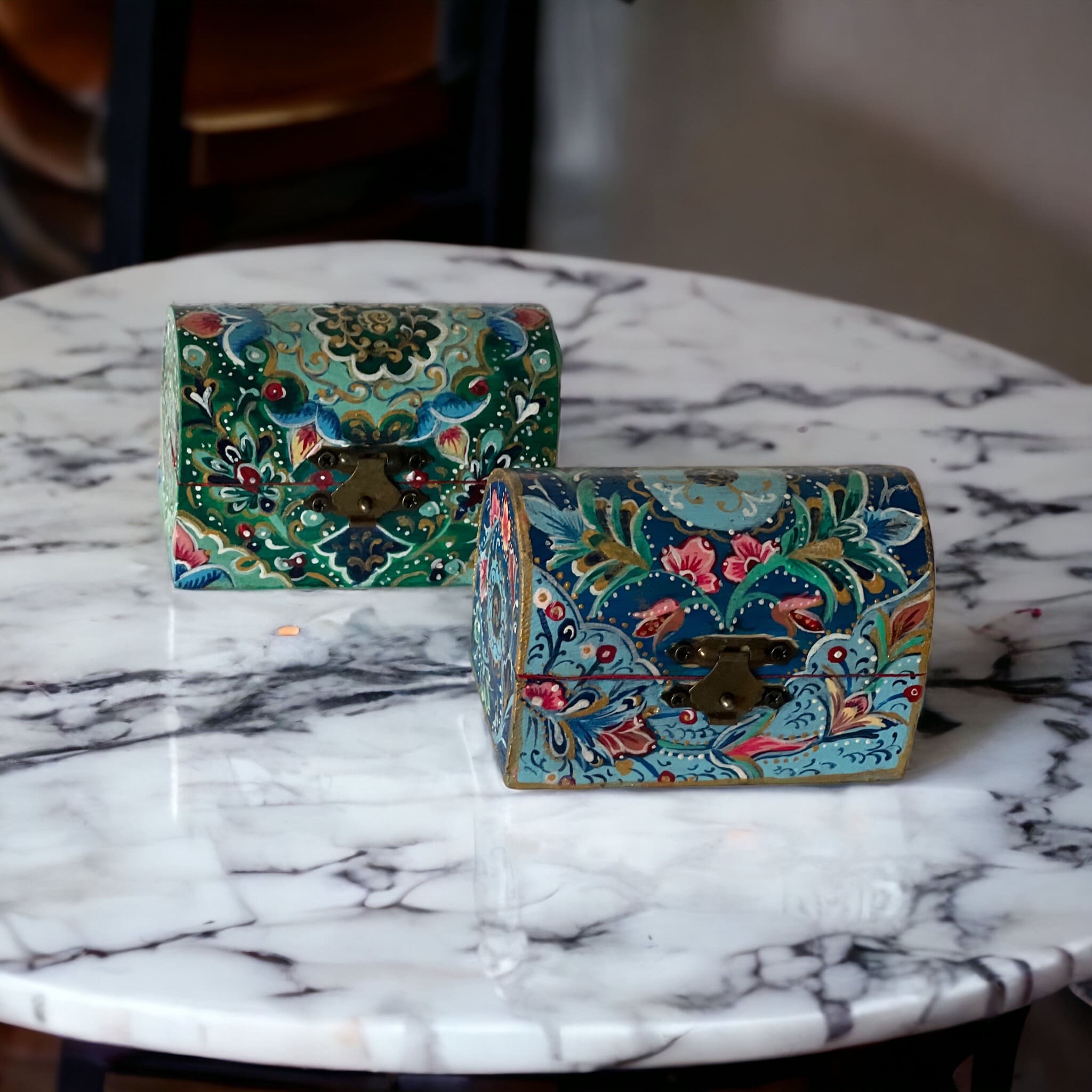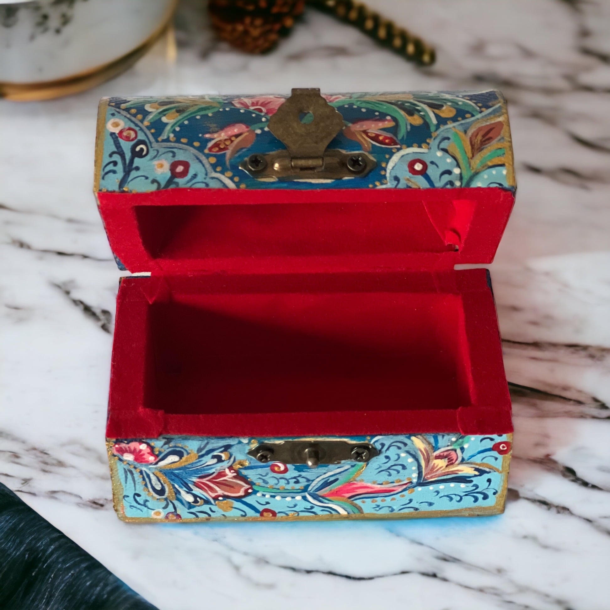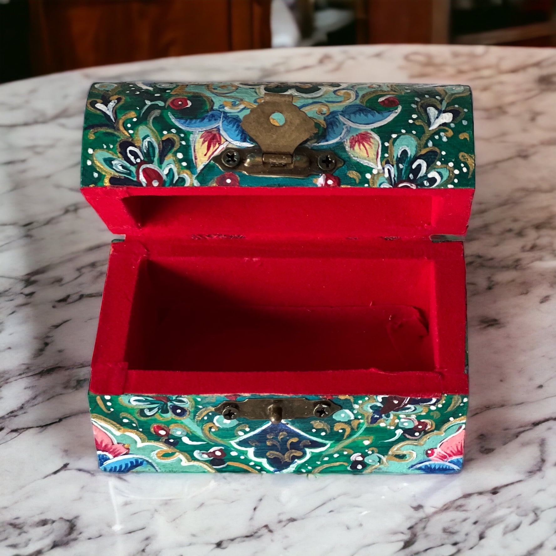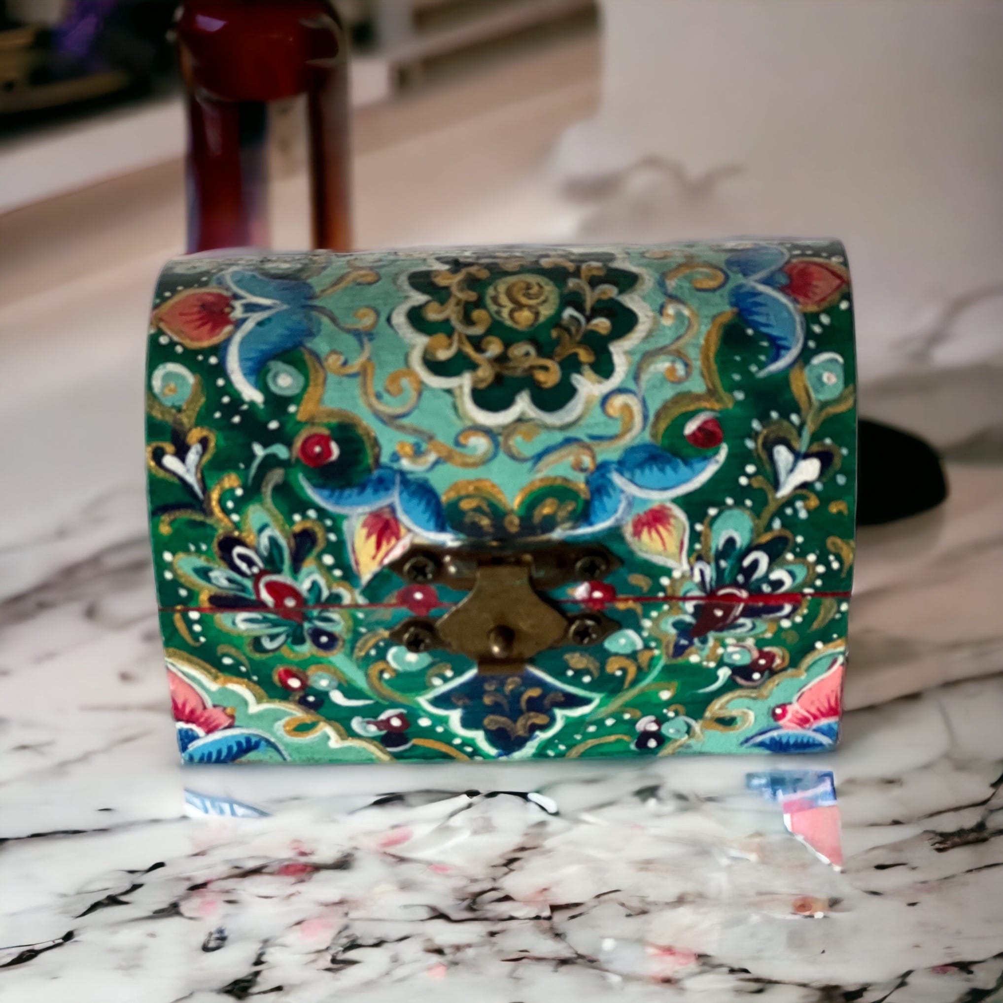 Boîte à bijoux en bois peinte à la main par une très talentueuse artisane algéroise.