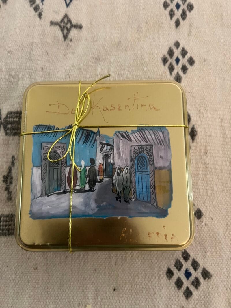 Ce coffret unique n’est pas seulement une gourmandise, c’est un hommage à notre patrimoine. Il est soigneusement peint à la main par les élèves talentueux de l’École des Beaux-Arts d’Alger, mêlant art et tradition dans un écrin fait avec passion.