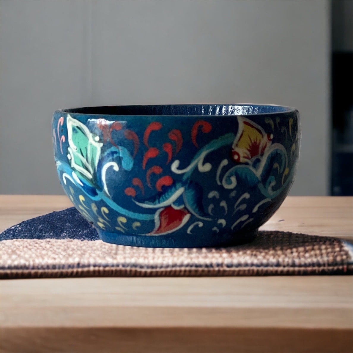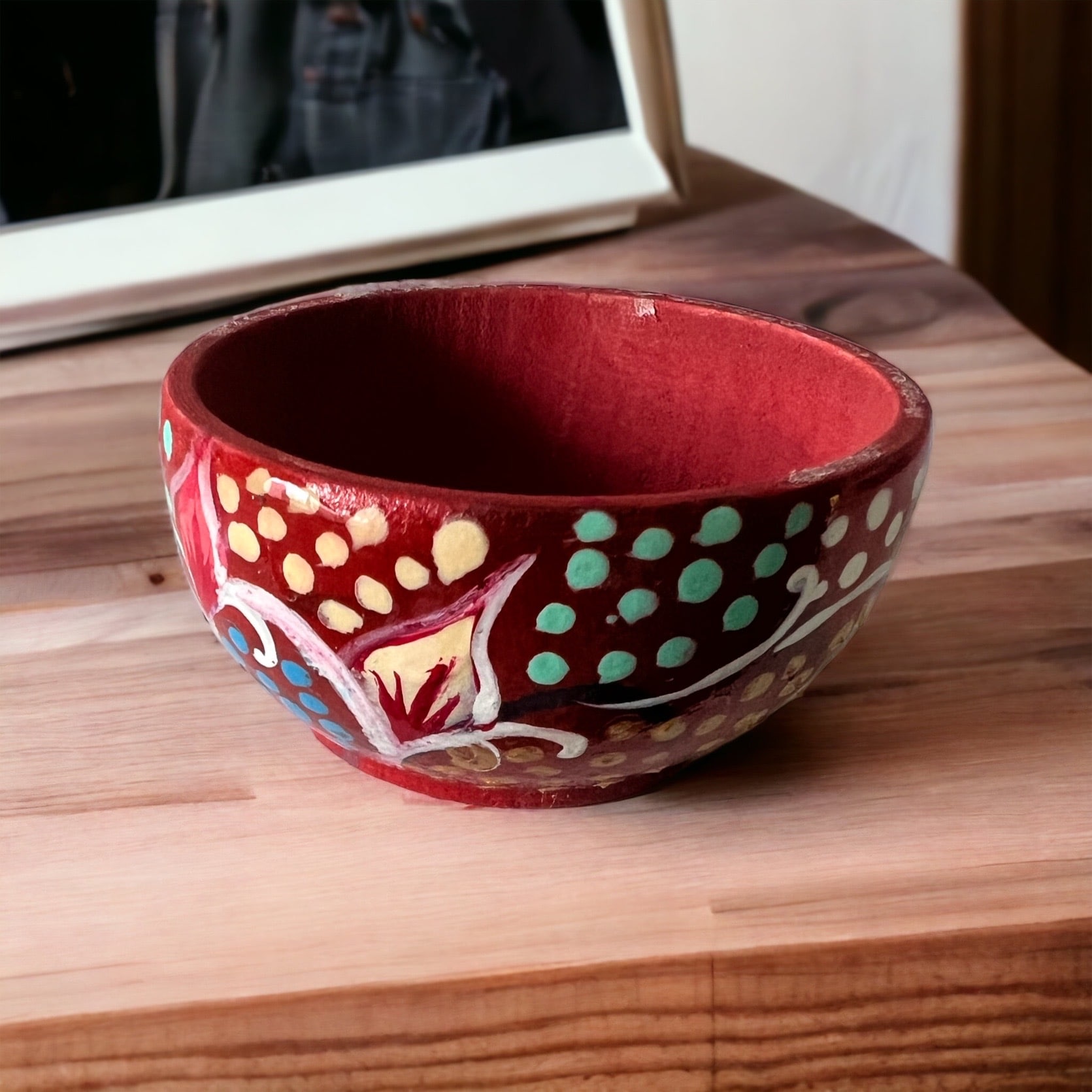 Petit dépose bijoux en bois peint à la main par une artisane algéroise.