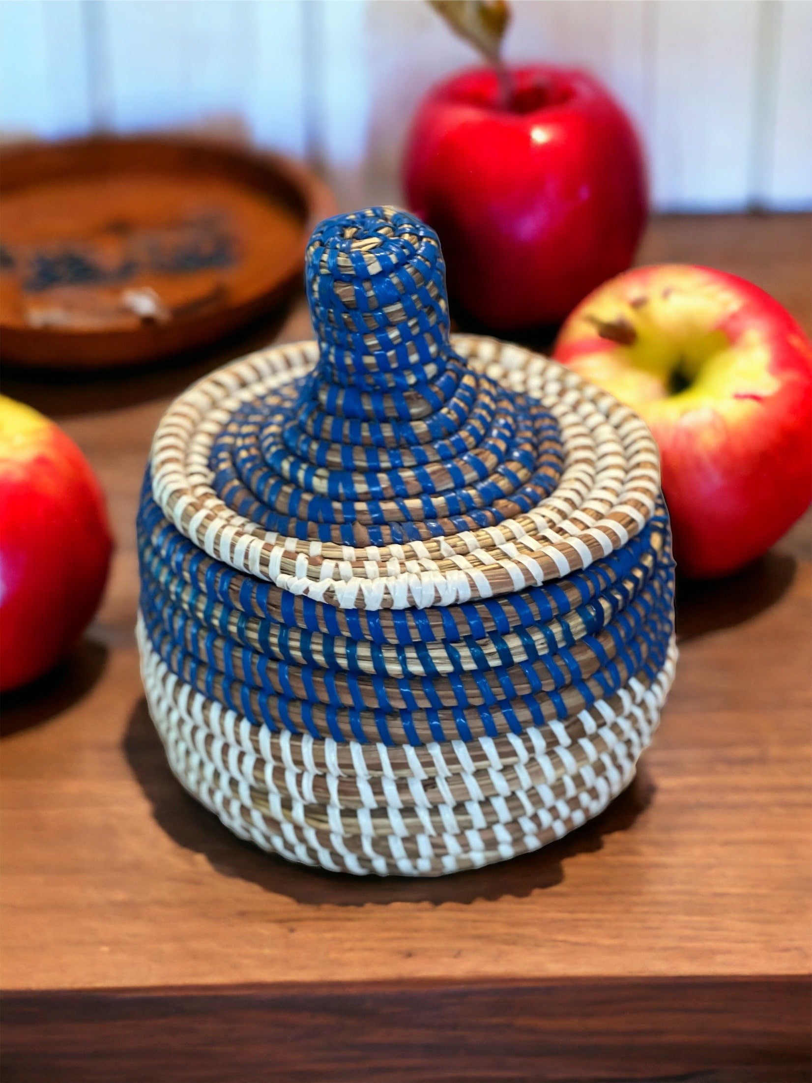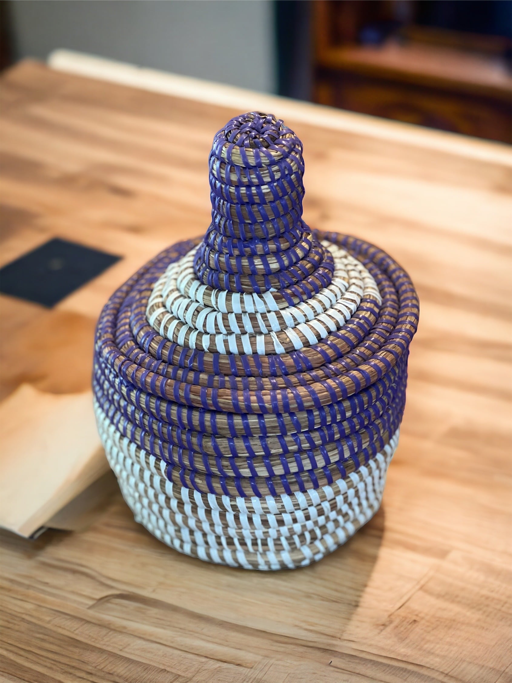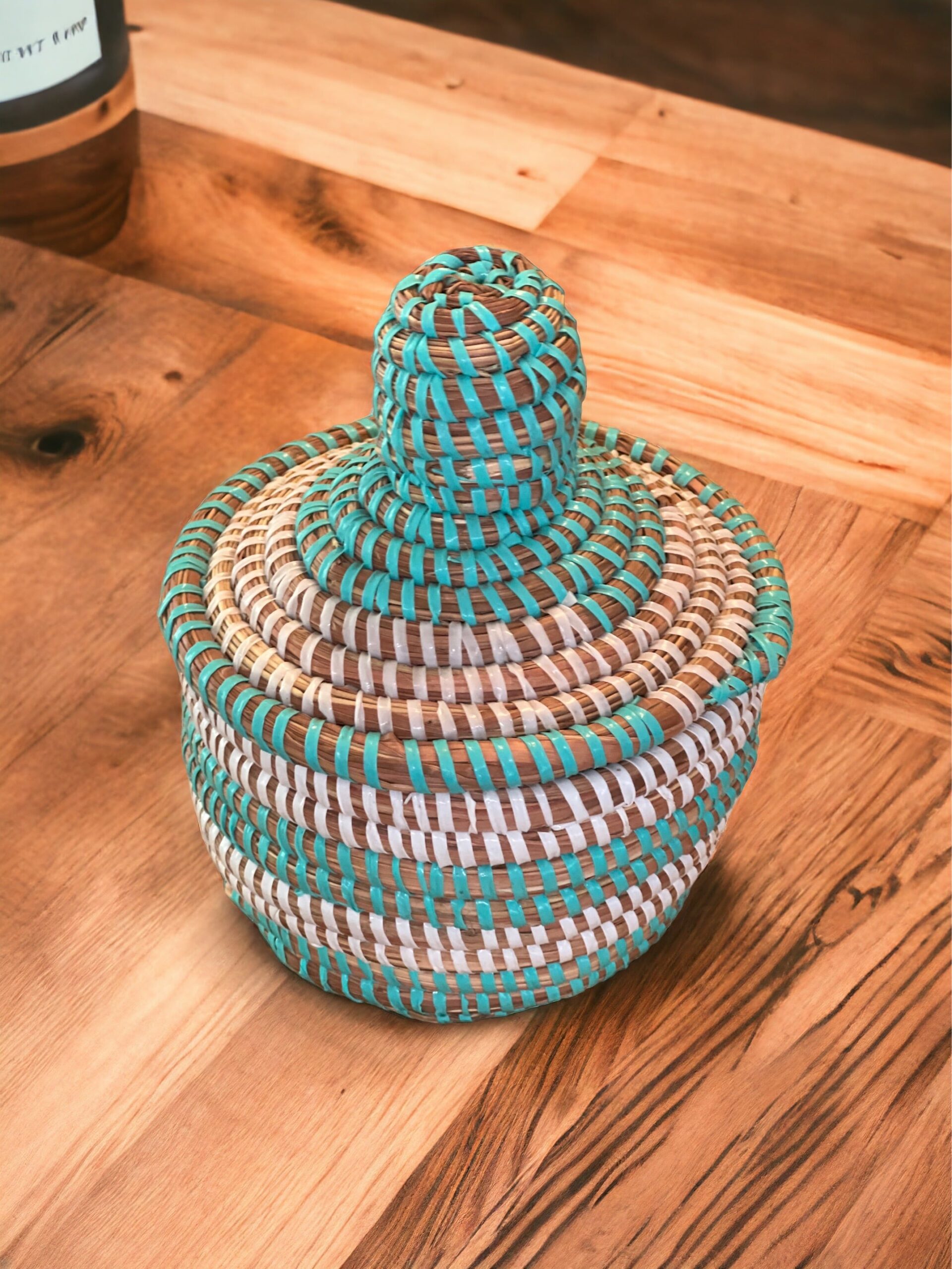 Panier avec couvercle fait en raphia naturelle par une artisane de Tamnrasset dans le sud Algérien..