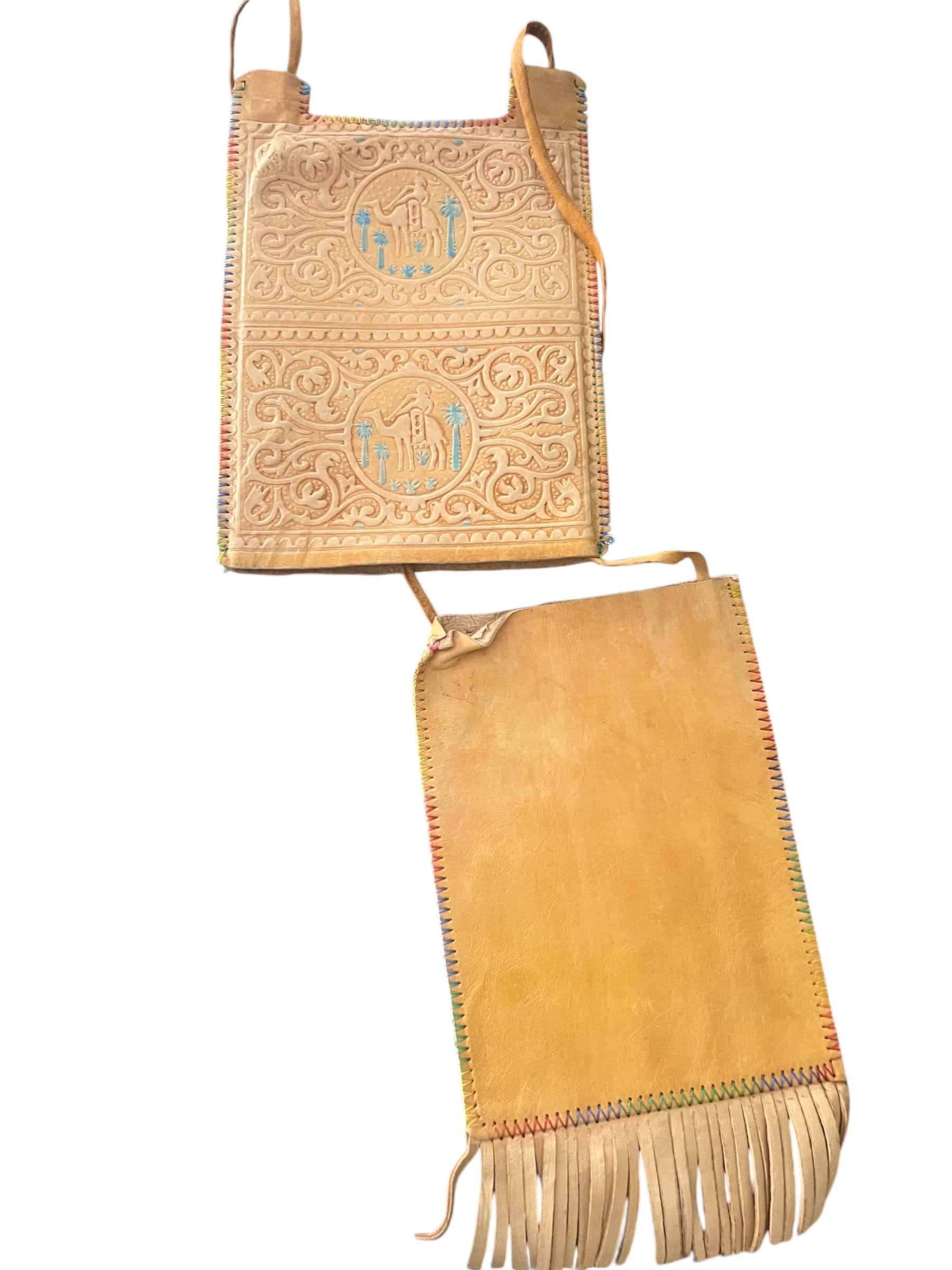Pochette en cuir brut naturel faite à la main. Par un artisan de Bab Al Oued.